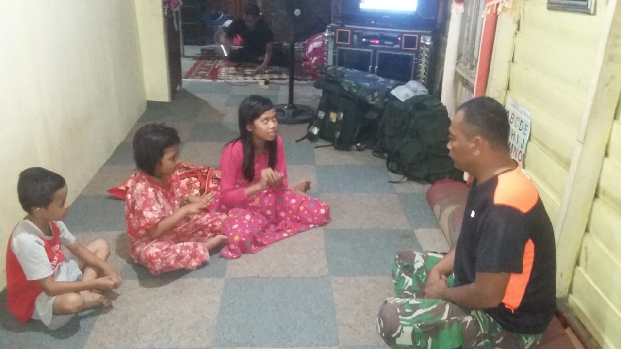 Seperti yang dilakukan oleh Lettu Inf Sahita, Danton Satgas TMMD Kodim 0419/Tanjab. Di malam hari Danton menyempatkan diri untuk mengajari anak-anak belajar berhitung di rumah H. Hasan warga Dusun Sungai Ayam.