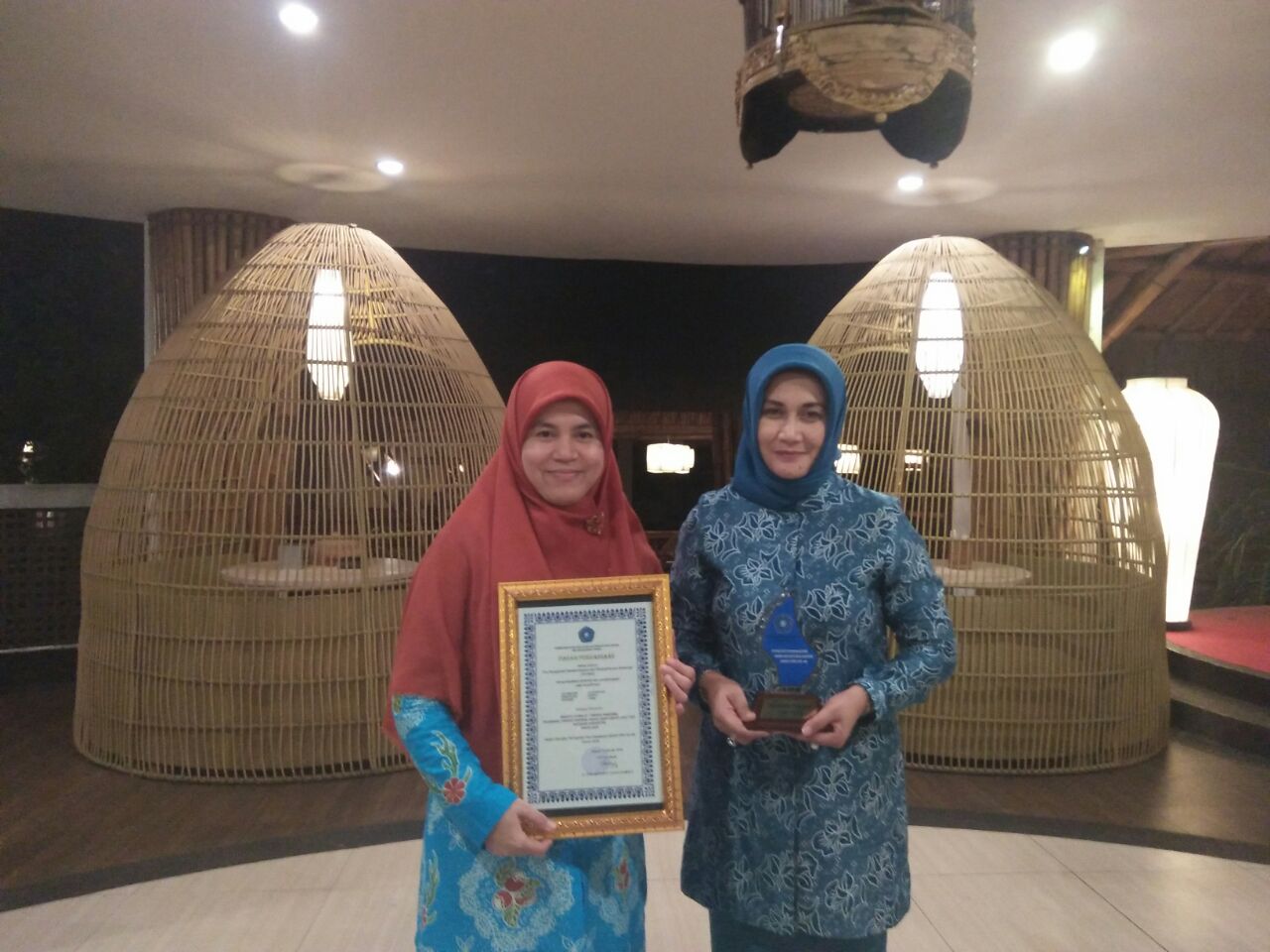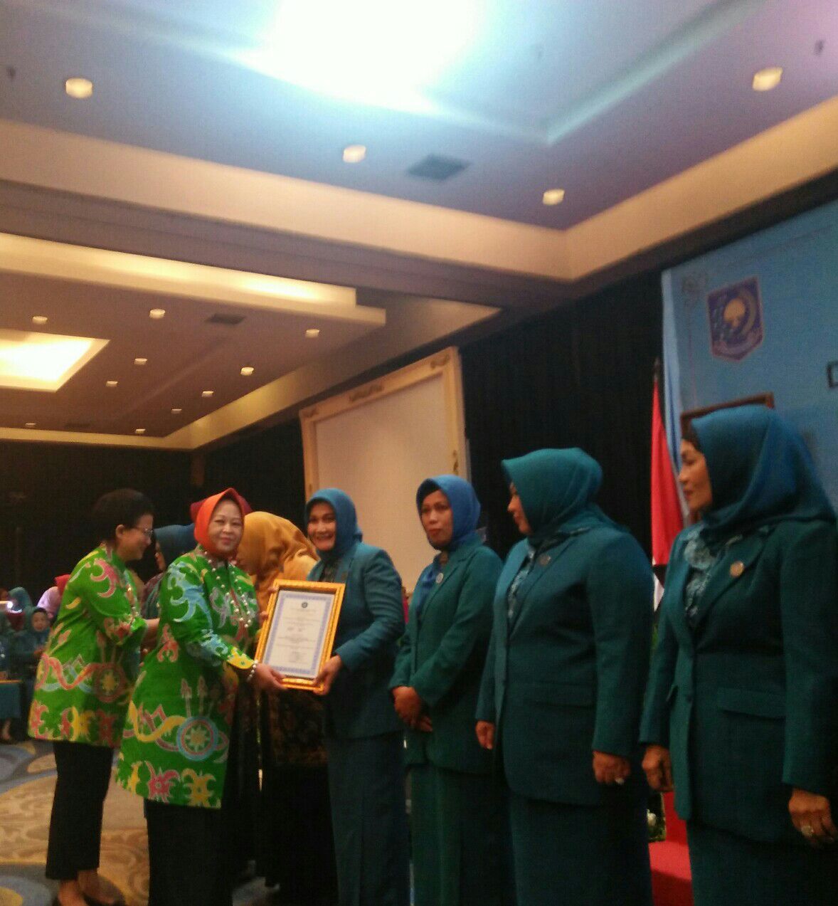 Penyerahan Penghargaan sebagai pelaksana terbaik II Tingkat Nasional kepada Kecamatan Jujuhan Ilir Kabupaten Bungo, diterima langsung Ketua TP PKK Bungo Ny Hj Verawaty Mashuri dari Ketua Umum TP PKK Pusat, Ny dr Erni Guntarti Tjahjo Kumolo pada Rabu malam (03/10).