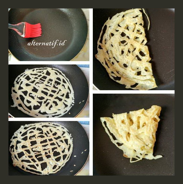 - Panaskan Wajan Antilengket Di Atas Api Sedang, Olesi Minyak. Semprotkan Adonan Di Atas Wajan Hingga Membentuk Sarang Laba-Laba. Masak Hingga Setengah Matang.