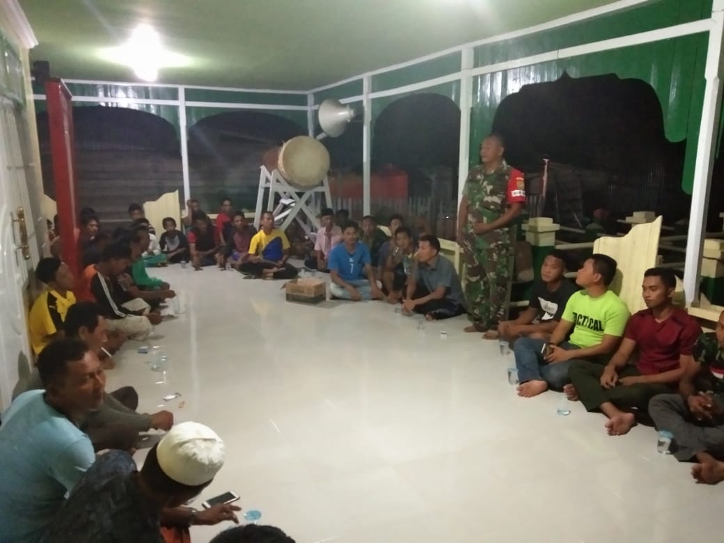 KUALA TUNGKAL, lampukuning.id – Satgas TMMD ke 103, Kodim Tanjab dipimpin Dan SSK Lettu Inf Sahita lakukan pertemuan di Teras Mesjid Nurul Iman dusun Sungai Ayam, Desa Pangkal Duri Kecamatan Mendahara, Kab. Tanjab Timur, Sabtu malam (3/11/2018)